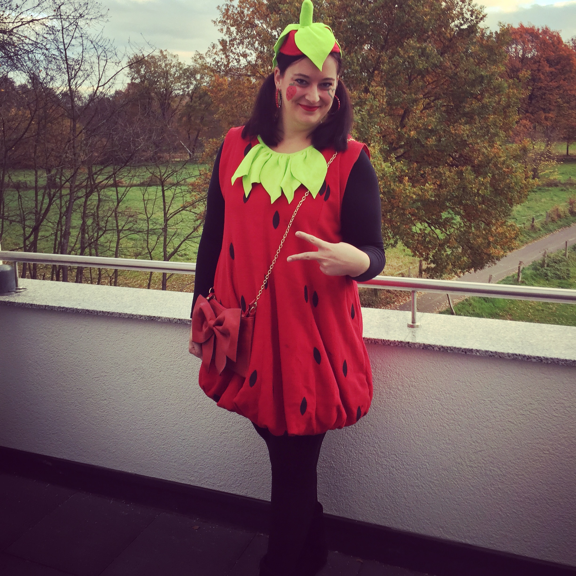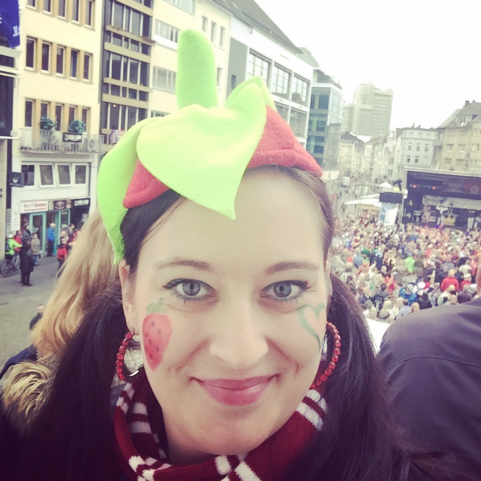 Nun natürlich auch zu meinem Kostüm. Ich bin mittlerweile als Erdbeere bekannt. Ich liebe dieses Kostüm. ( gekauft in der Metro, gibt es aber auch bei Deiters ) Das Erdbeer Kleid ist super schön weich und hält warm, was beim Karneval nicht unerheblich ist. Dazu habe ich dieses Jahr meine kleine rote Tasche von http://www.justfab.de kombiniert. Geschminkt habe ich mich selbst, in grün und rot, natürlich kein Meisterwerk, aber darauf kommt es im Karneval auch nicht an. Jeder Jeck ist anders 💜