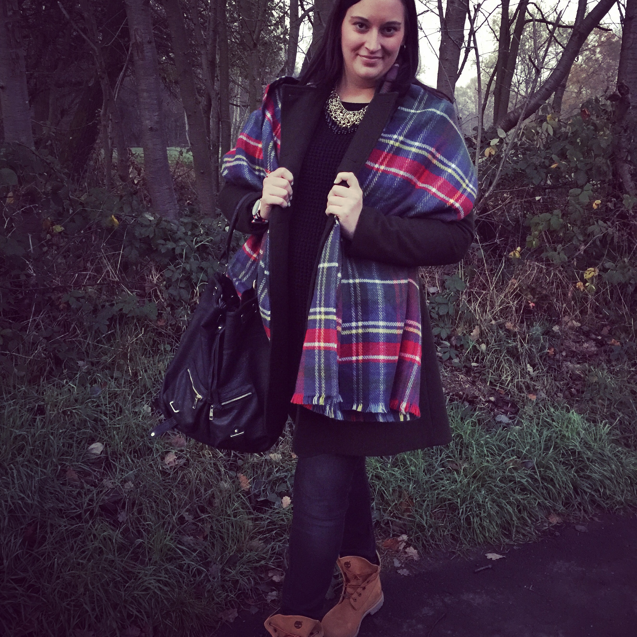 Darauf habe ich einen XXL Schal gelegt, welchen man immer wieder neu dazu stylen kann. Man kann ihn auch einfach wie einen Poncho drüber werfen, so hält er auch noch einmal mehr warm. Mein XXL Schal ist von Abercrombie & Fitch, ich liebe ihn, denn er ist super weich.