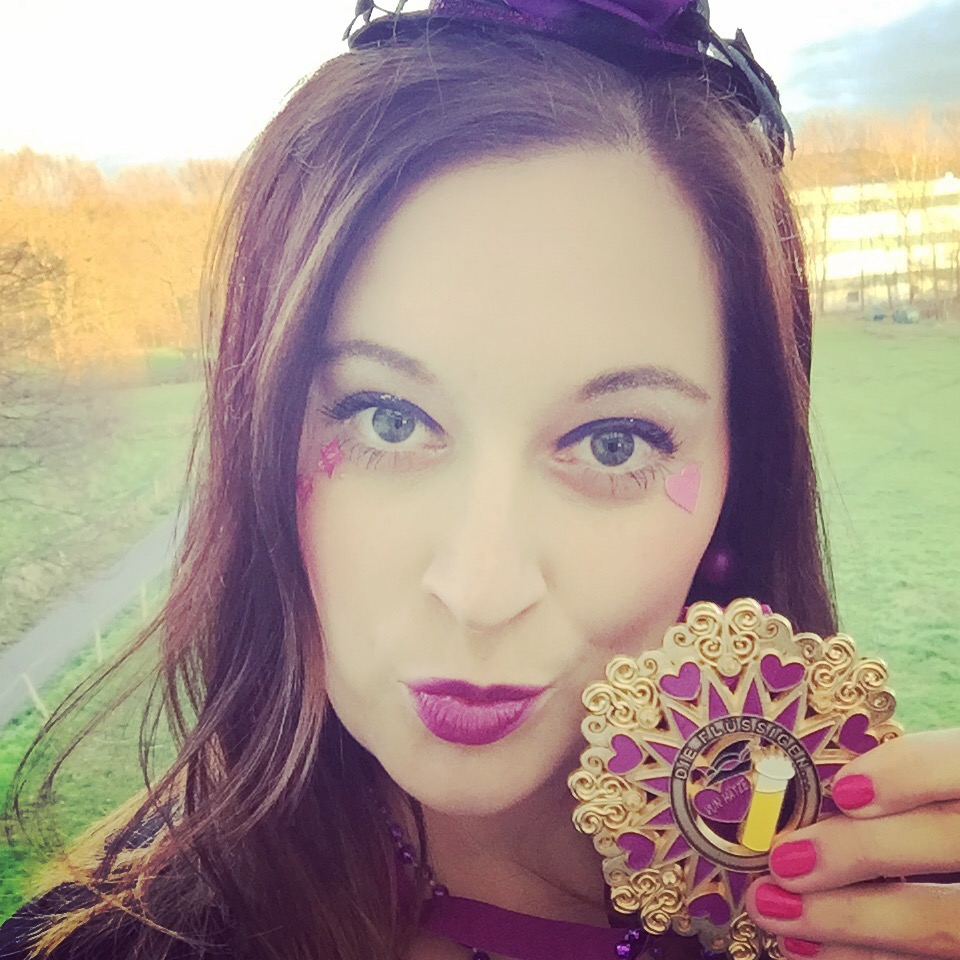 Das kleine Hüttchen in Lila habe ich beim Karnevalswirts in Köln gekauft, sowie auch die Sticker für das Gesicht. Der Lippenstift ist von Mac und heißt „Violetta“. Und ganz abgerundet ist ein Karnevalskostüm natürlich nur mit dem Vereinsorden, welchen ich mit Stolz tragen darf 💜