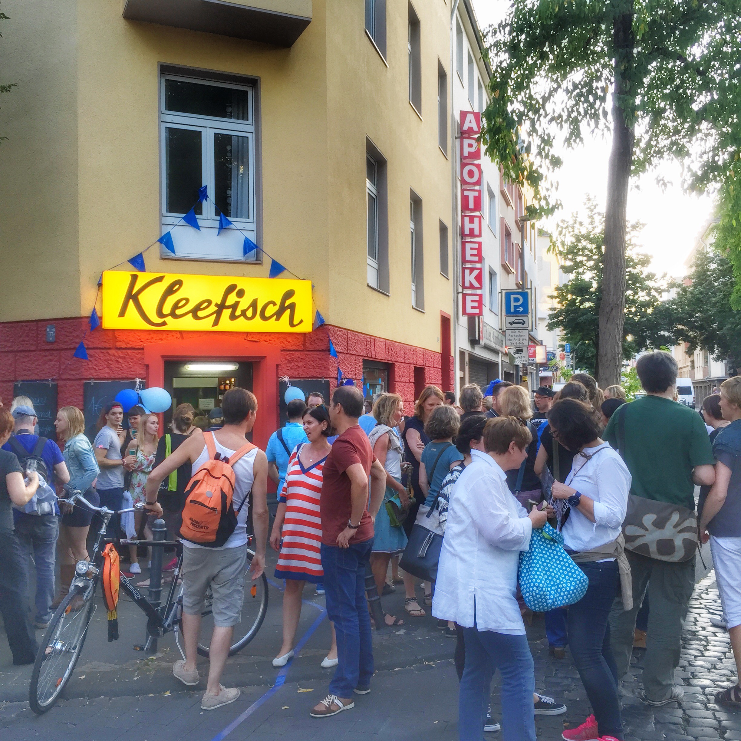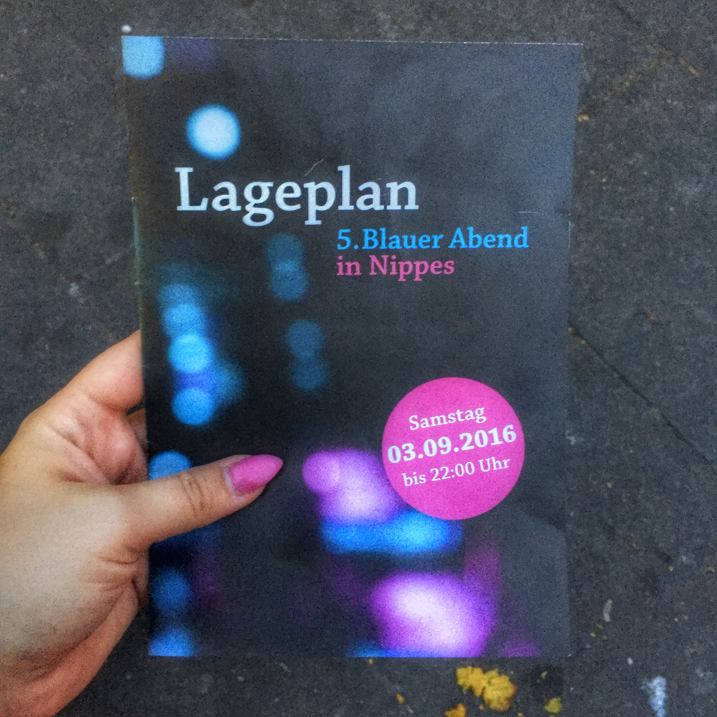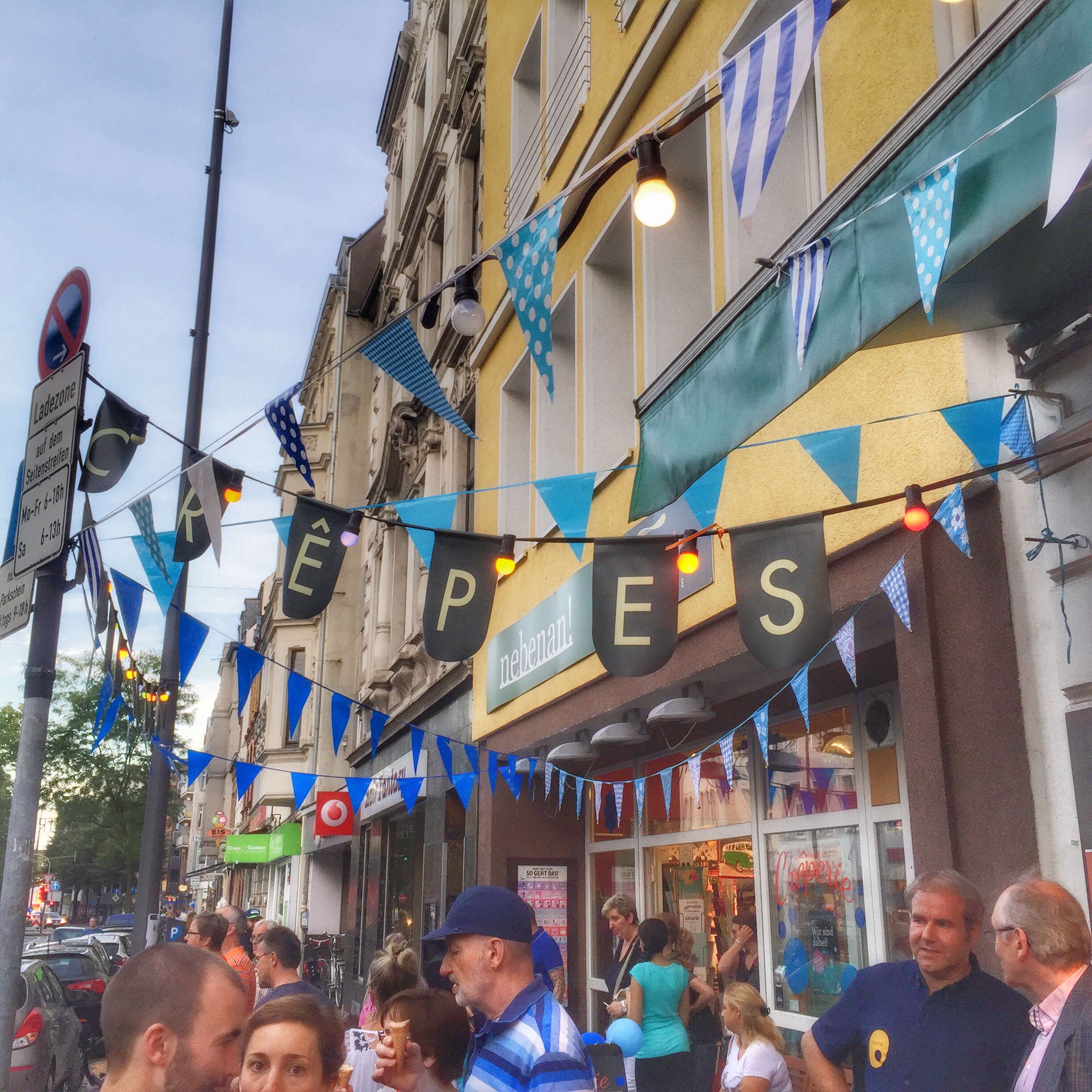 Zum 5ten Mal haben die Nachbarn in Nippes dieses süße Straßenfest organisiert. Alle beteiligten Geschäfte sind in Blau geschmückt und selbst die Verkäuferinnen und Verkäufer tragen an diesem Abend Blau. Überall gibt es Sektempfang und kleine süße, natürlich Blaue, Leckereien. Man merkt sofort das jeder für sich das Fest gut geplant hat und dadurch eine sehr gemütliche Atmosphäre geschaffen hat.
