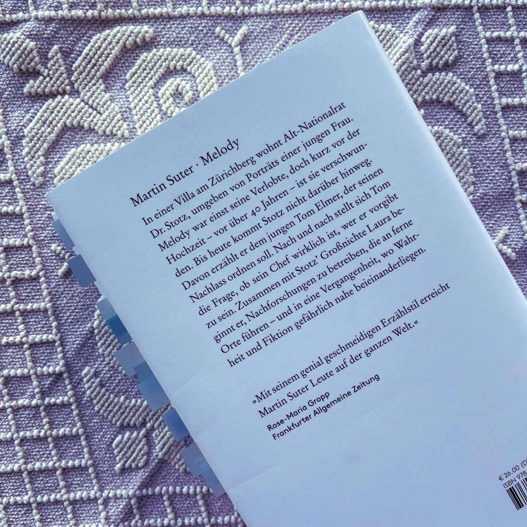 Ich mochte das Buch sehr. Tolle Charaktere, tolle Geschichte und mit einer Wendung am Ende. Wirklich gelungen. Der Schreibstil von Martin Suter ist wie immer mit Leichtigkeit versehen, man fliegt förmlich durch die Seiten und das ohne die spannenden Momente zu verpassen. Sehr angenehm. Meiner Meinung nach, ein sehr gelungener Suter. Klare Empfehlung für Melody. Danke an den Diogenes Verlag für das Rezensionsexemplar.