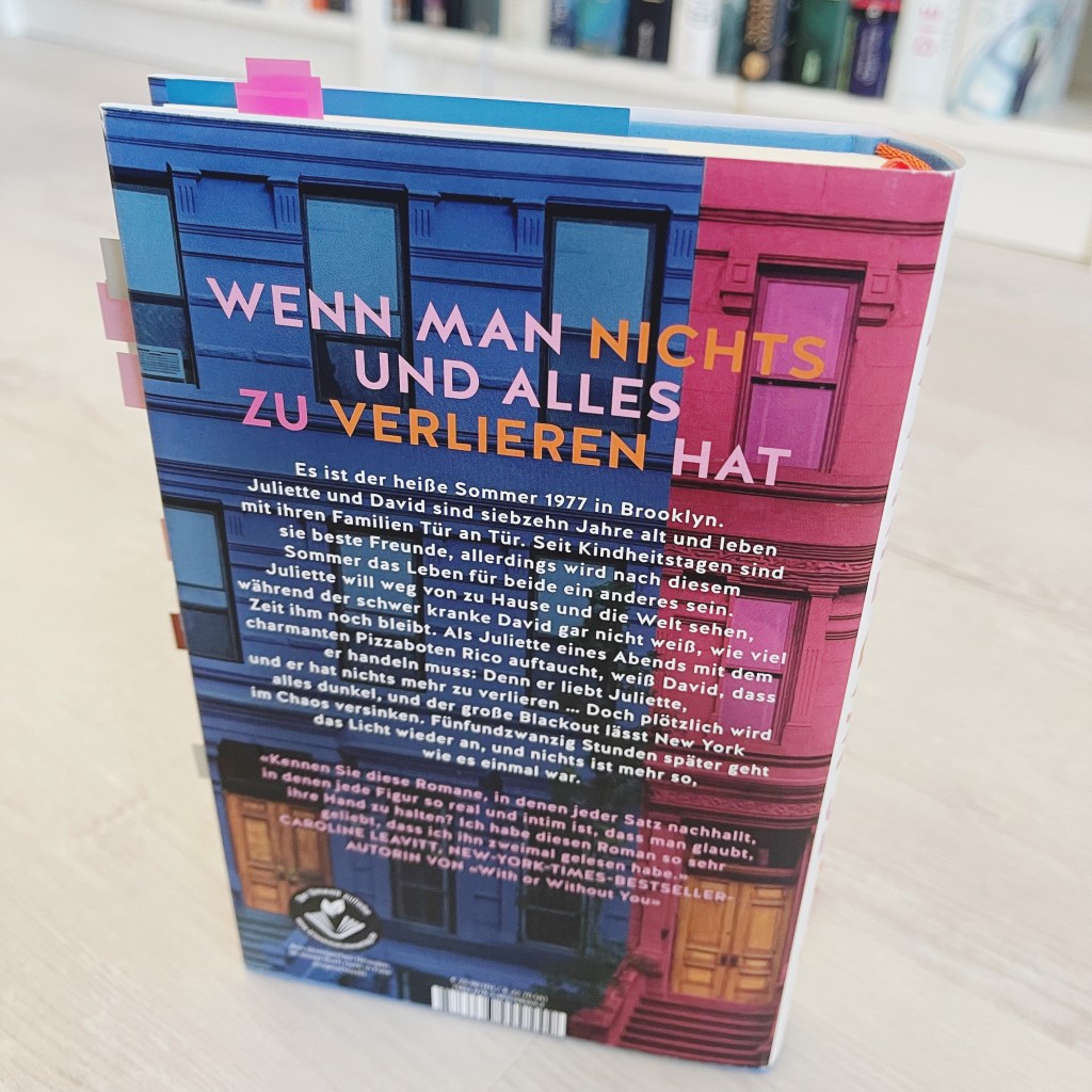 Dieses Buch enthält so viele tiefe Gefühle. David ist zum Beispiel ein so toller Charakter in diesem Buch. Am Anfang hat er mir mit seinem Stalking Angst gemacht, aber schlussendlich möchte er Juliette nur beschützen. Juliette fand ich zeitweise dumm und naiv, dass sie sich überhaupt auf den fremden Pizzaboten einlässt. Der übrigens von vorneherein nicht ganz sauber rüber kam. Syd Atlas kann unglaublich gut Charakter zeichnen und Gefühle transportieren. Ich mochte auch ihren Schreibstil sehr gerne. Ein paar mehr Eindrücke aus dem tollen Stadtteil Brooklyn hätte ich mir allerdings schon gewünscht. Alles in Allem mochte ich diese Geschichte über Freundschaft, Sehnsucht und Trauer sehr gerne. Ich würde gerne 4,5 von 5 Sterne vergeben. 🌟
